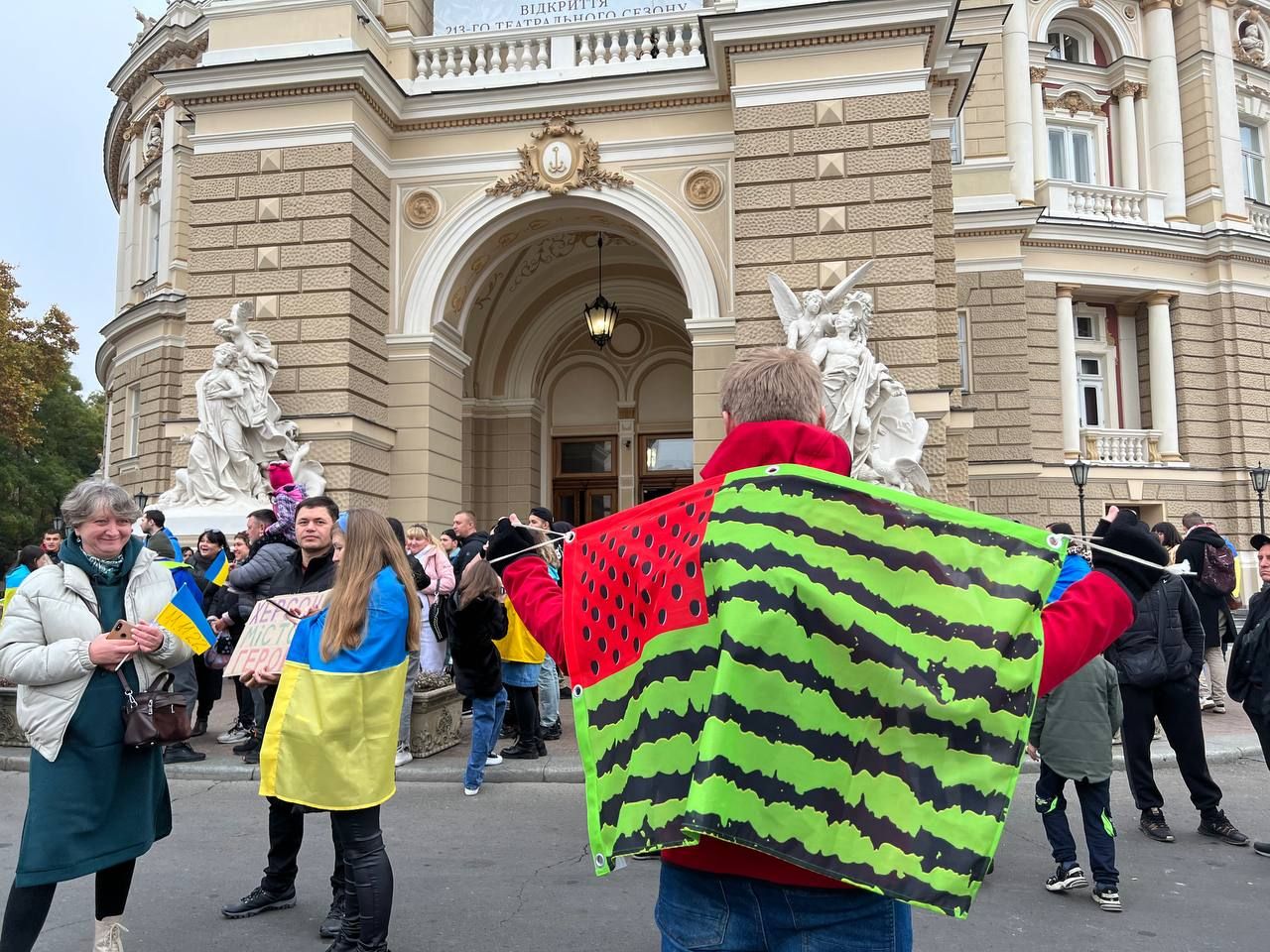 Біля оперного театру в Одесі люди співали гімн України та пісню "Ой, у лузі червона калина".