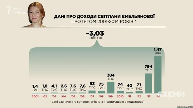 Більшість знайденого журналістами іноземного майна Світлана Ємельянова придбала до 2014 року включно, тобто в період, поки перебувала в офіційному шлюбі з українським суддею. При цьому, згідно з даними української податкової, які програма "Схеми" отримала від своїх джерел, за період 2001 – 2014 років вона офіційно заробила близько 3 мільйонів гривень. Увесь цей час колишній чоловік Світлани Артур Ємельянов працював на посаді судді.