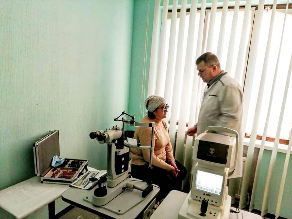 А взагалі у нас зараз весь колектив – це переселенці. Наш колектив невеликий, лише 4 людини. Це я, моя дружина і ще лікар-офтальмолог – це моя учениця. Вона закінчила інтернатуру й приїхала сюди, також із Сєвєродонецька, Також є медсестра з Лисичанська.