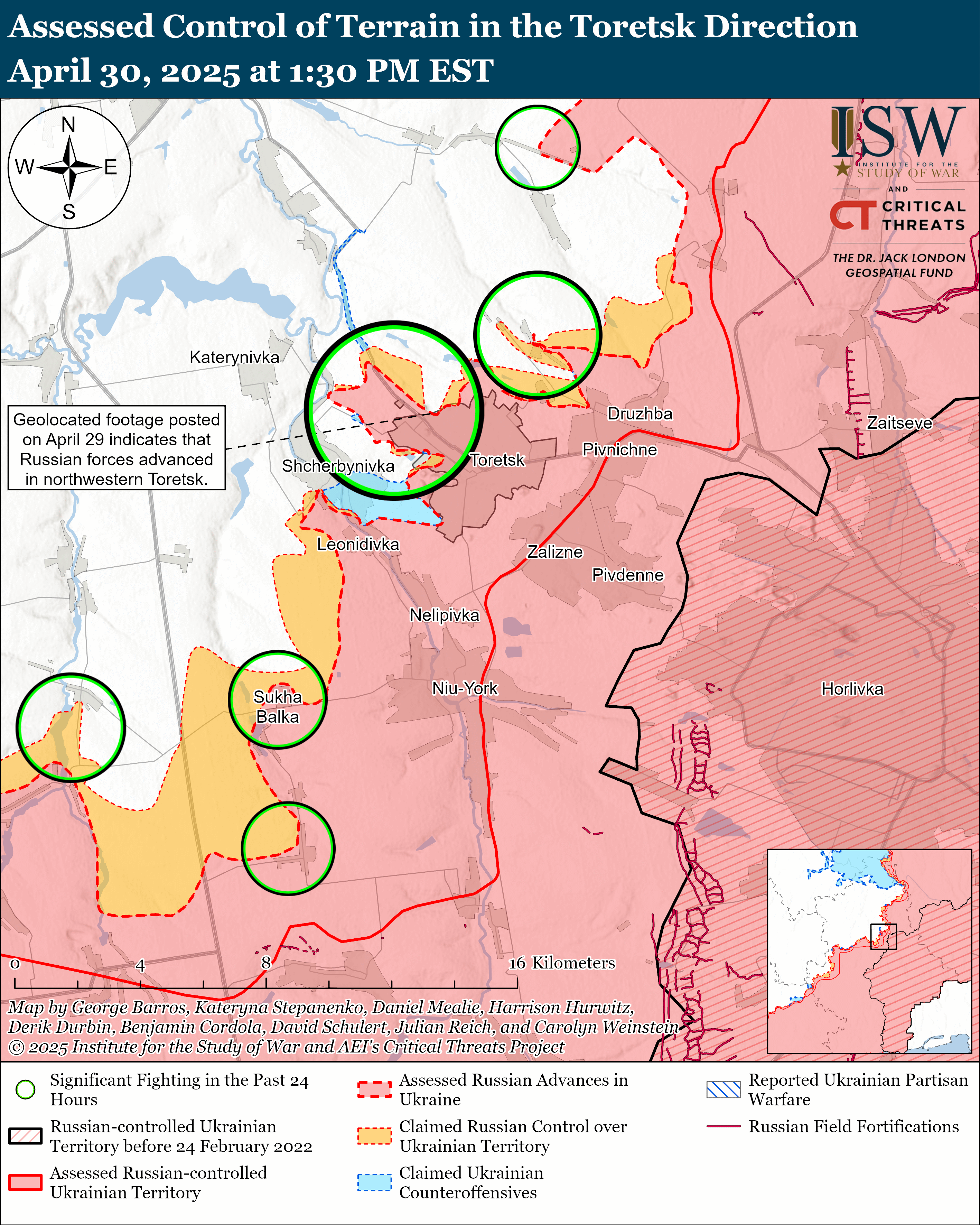У звіті за попередню добу Інститут писав, що ЗСУ просунулися на Торецькому напрямку, а російські війська мали успіхи на Покровському та Курахівському напрямках.