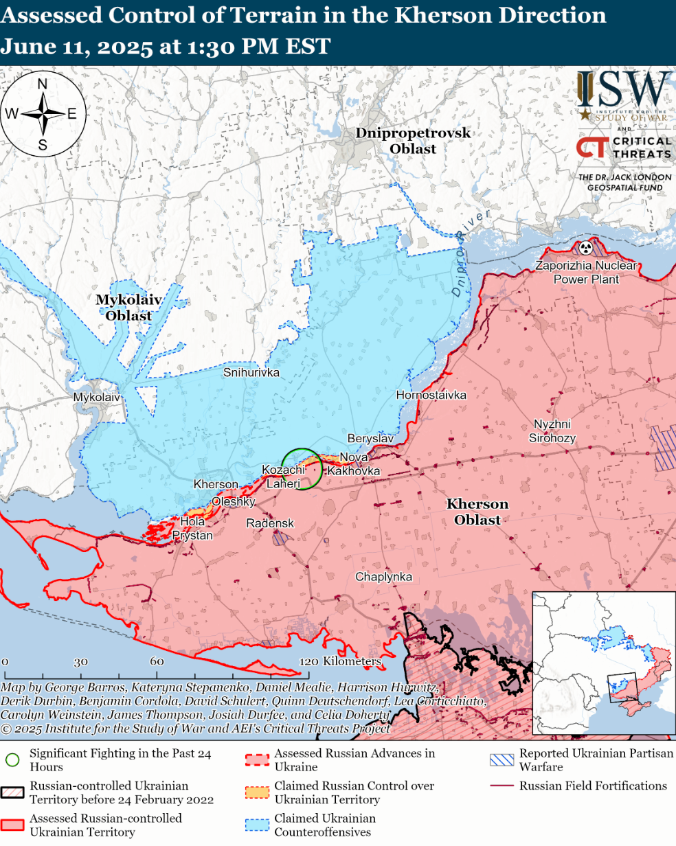 - Ні російські, ні українські джерела не повідомляли про наземну активність на північному заході Бєлгородської області 11 червня.