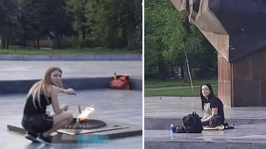 На фотографіях, які опублікувала жінка, видно, як двоє молодих дівчат смажать сосиски на "вічному вогні".