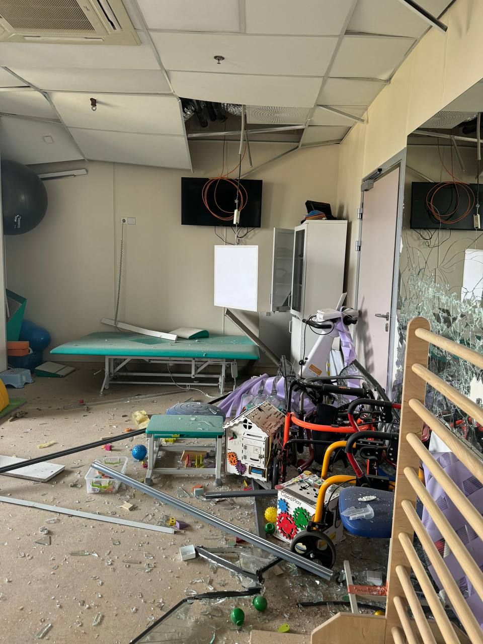 На кадрах показані пошкоджені кабінети та коридори лікарні, в якій лікувалися українські діти.