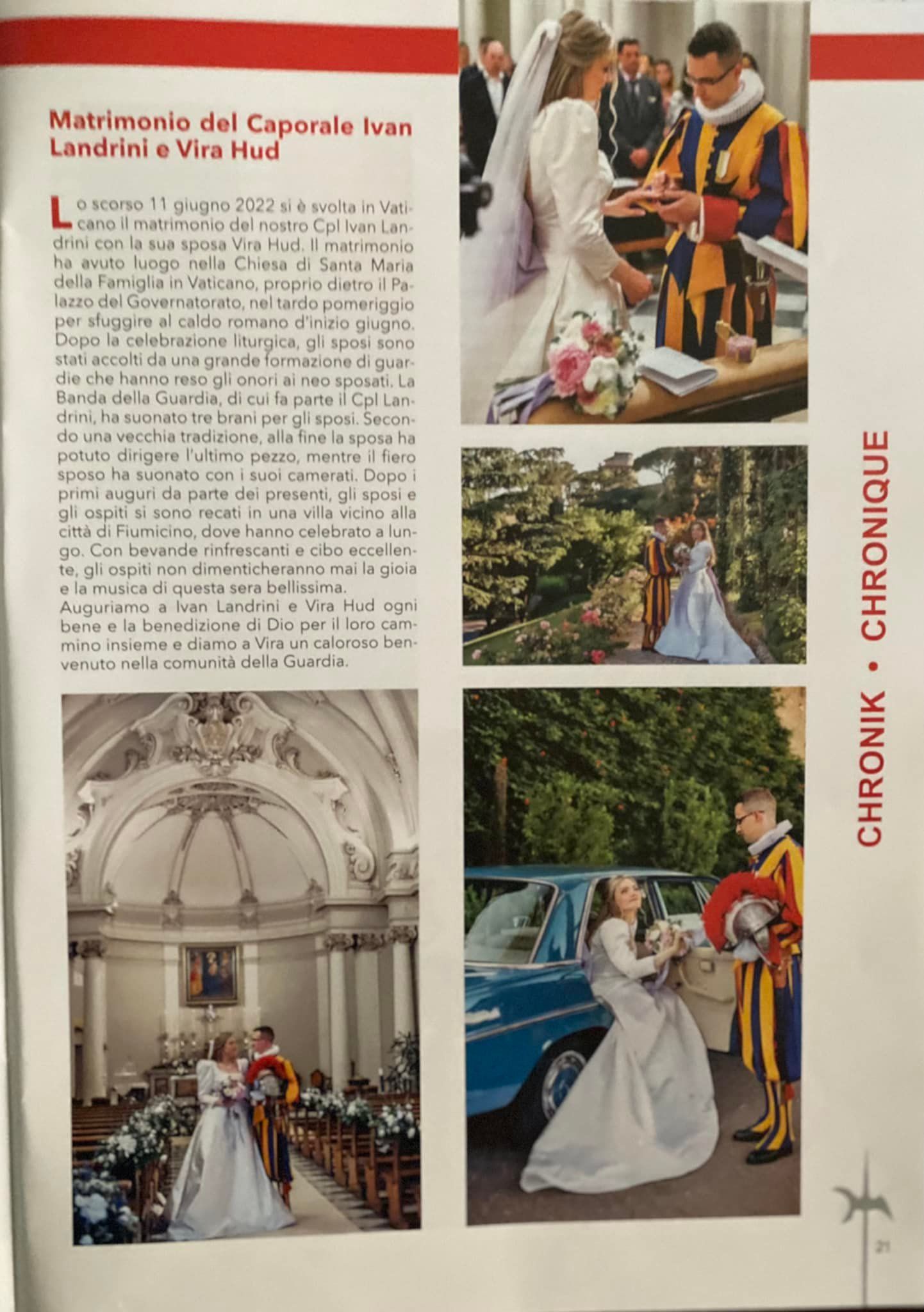 Також про весілля написали у 23-му віснику Папської Швейцарської гвардії Messaggero. Як відомо, до весілля пара зустрічалася близько 5 років.