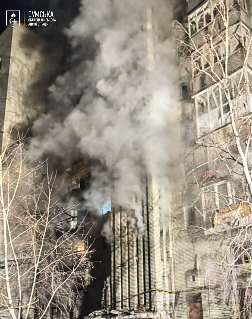 - В Охтирці росіяни влучили у багатоповерхівку трьома ударними БпЛА.