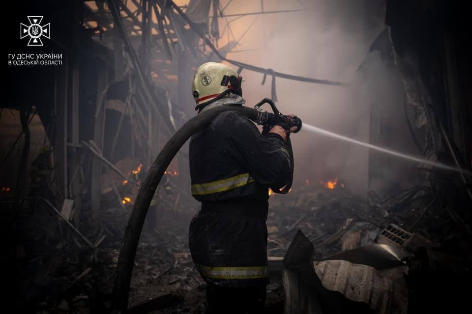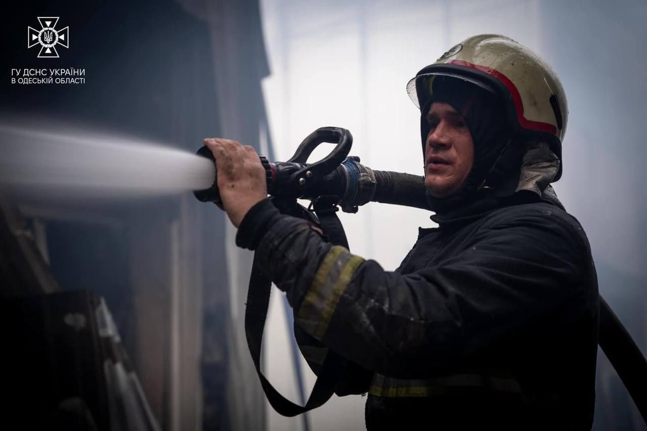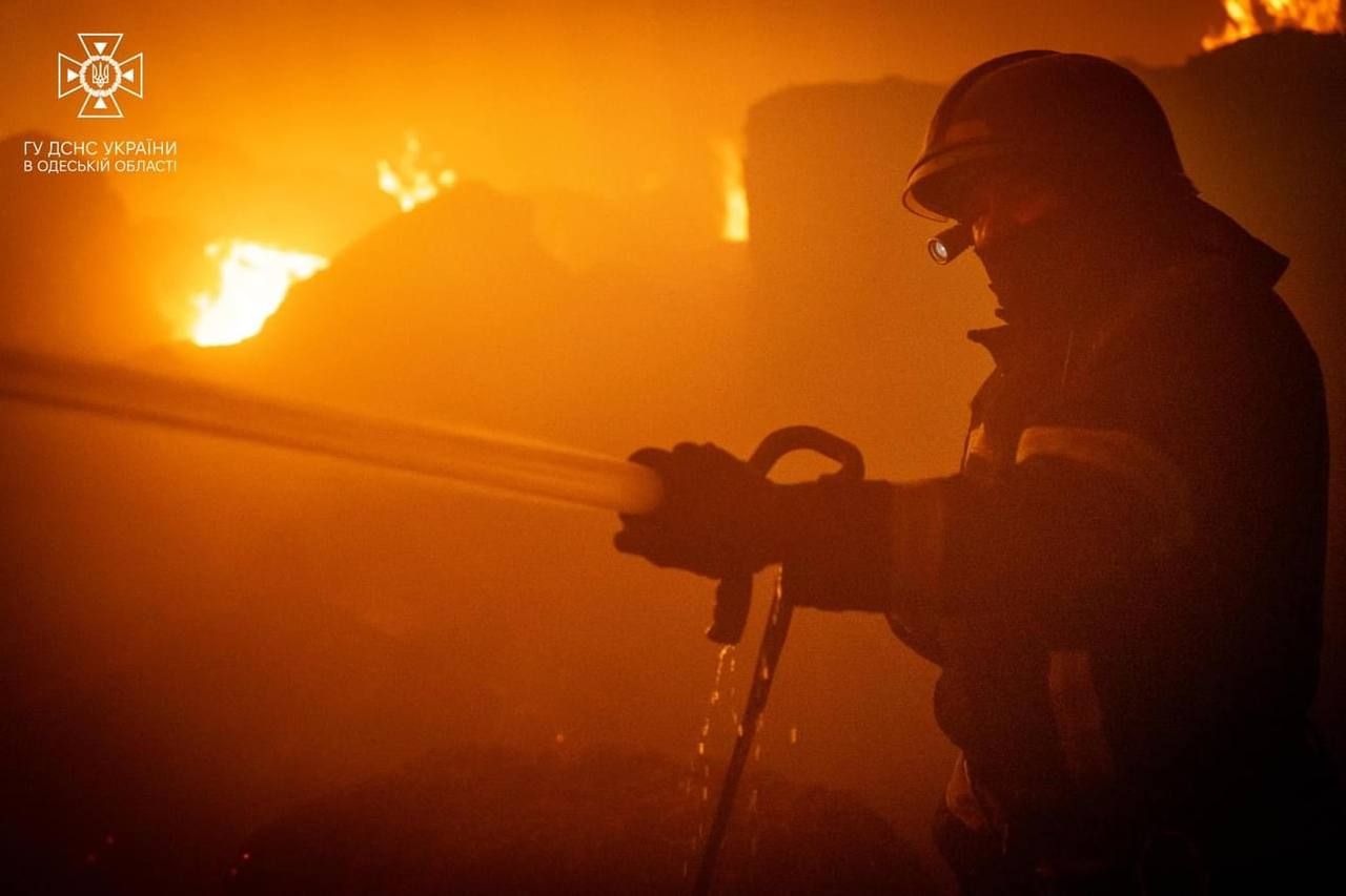 Надзвичайники гасять вогонь, який охопив Одесу після нічного обстрілу / Фото ДСНС