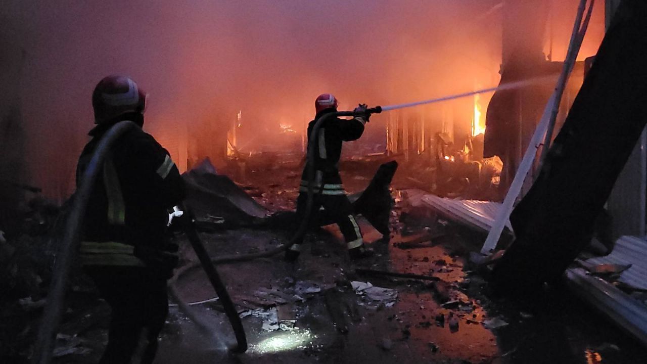 Ракети влучили у ринок промислових товарів, де були склади з тютюном і феєрверками. Пожежу гасили 17 машин вогнеборців, оскільки вона була масштабною – понад 2 000 квадратних метрів.
