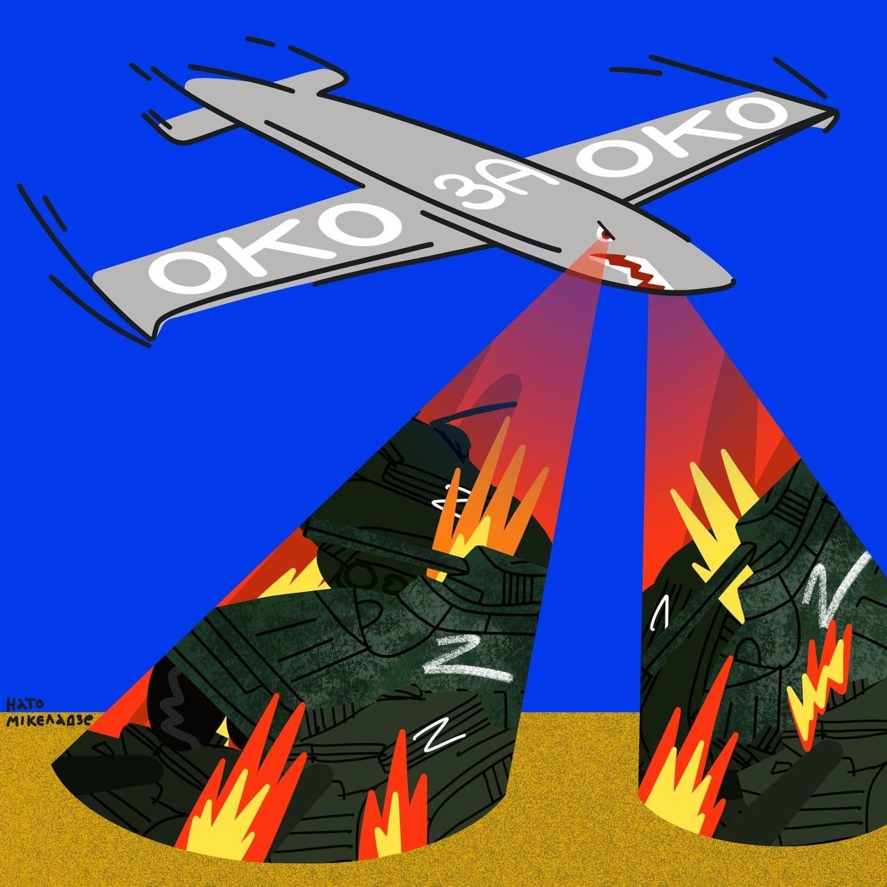 Художники відзначають, що на роботу їх надихнула спільна ініціатива ОККО та "Повернись живим" – "ОКО ЗА ОКО". Організатори поставили собі за мету придбати 25 розвідкомплексів "ШАРК" для української армії. З листопада ОККО перераховує по 1 гривні з кожного проданого літра пального Pulls на закупівлю комплексів.