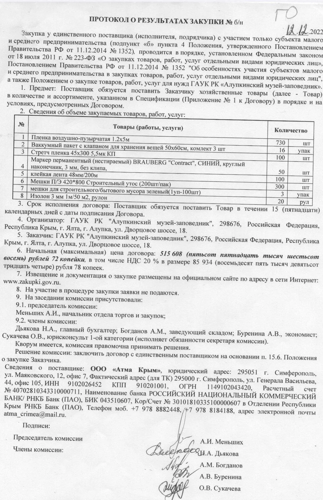 Згідно з документами, викладеними на сайті державних закупівель, придбанням всіх необхідних для евакуації товарів займаються у Феодосійському краєзнавчому музеї, Алупкинському музеї-заповіднику, Кримському республіканському краєзнавчому музеї та всіх інших закладах культури, де зберігаються хоч якісь цінні експонати.
