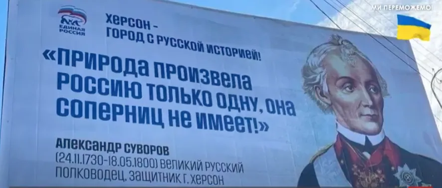 Окупанти в Херсоні розклеїли пропагандистські білборди / Скриншот 24 каналу