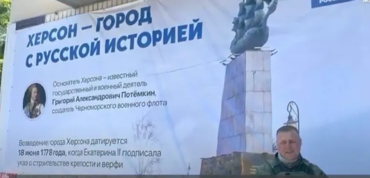 Це роблять без участі херсонських комунальних підприємств, які відповідальні за зовнішню рекламу. Про це 24 каналу розповів активіст з Херсона Володимир Молчанов.