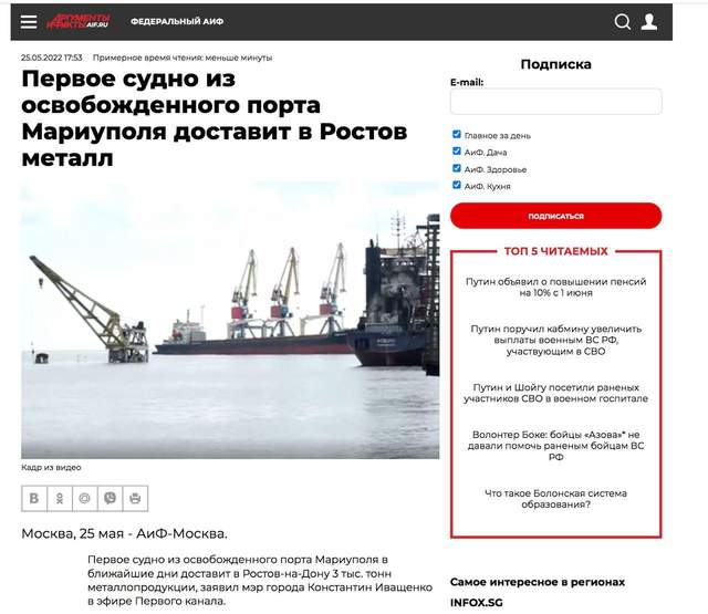 телеграм-канал Дениса КазанськогоРосія вивозить із Маріуполя кораблями награбований у Ахметова метал. Нарешті стало зрозуміло, заради чого зруйнували півмільйонне місто та вбили тисячі його мешканців – заради банального мародерства.