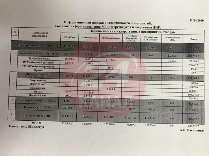 Про це красномовно свідчать документи з пояснювальної записки "мінвугілля" квазіутворення, в яких нема ані слова про плани виплати боргів перед іншими підприємствами. Тож, їх просто кинули.