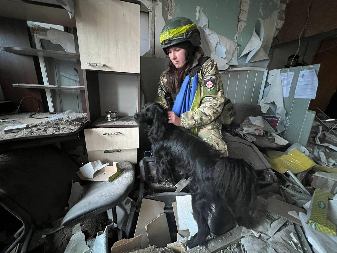 В руках поліцейської з "Білих янголів" – майже вцілілий український прапор із розбитого відділу поліції. Росія знищила будівлю, але не наш дух! І з кожним днем ми стаємо сильнішими та стійкішими,