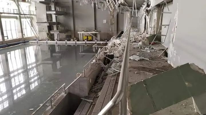 На час повномасштабної війни люди ховалися в будівлі басейну від постійних обстрілів з боку окупантів. Утім, вони таки розбомбили будівлю. На щастя, ніхто не загинув.