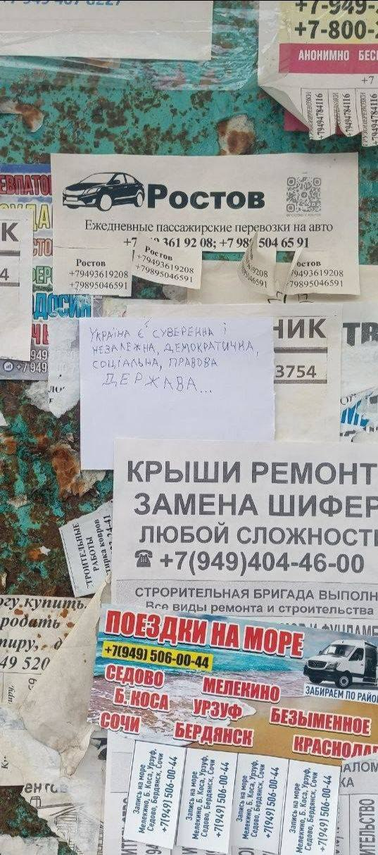 У Сімферополі, Севастополі, Ялті, Євпаторії, Бахчисараю та Армянську – було розповсюджено сотні листівок і стікерів з цитатами з Конституції України про права й свободи, які особливо важливі для тих, хто живе в окупації й вірить у деокупацію,