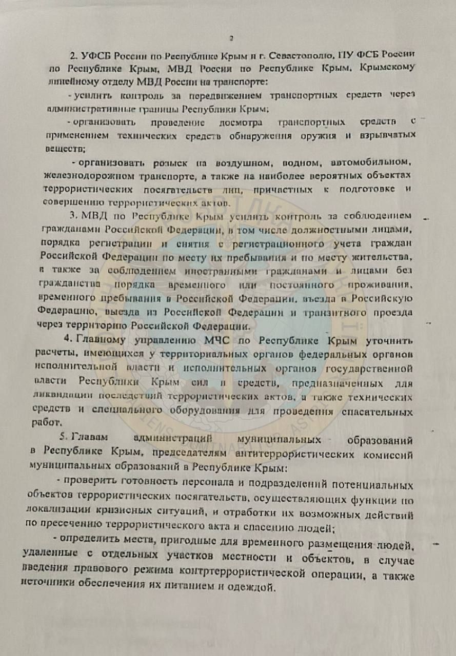Згідно з документом силовики окупантів повинні посилити контроль за пересуванням транспорту на півострові. Також загарбники хочуть: