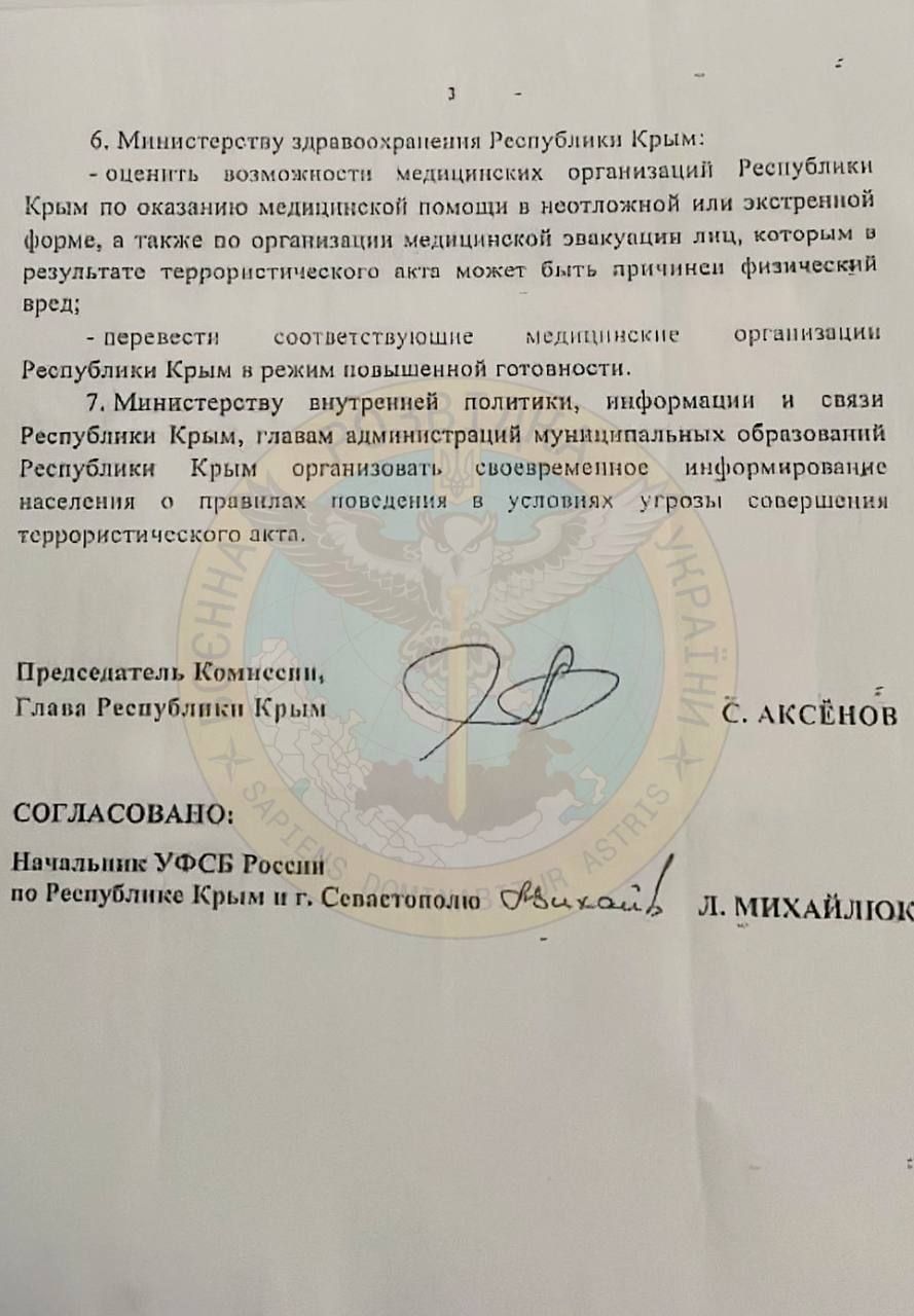 Так, в Головному управлінні розвідки повідомили, що окупаційна влада Криму готується до української операції зі звільнення півострова. Про це свідчать документи, підписані так званим головою республіки Крим Аксьоновим.