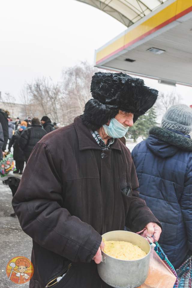 У Донецьку люди з каструлями прийшли по безкоштовну їжу / Фото "Пища Жизни"