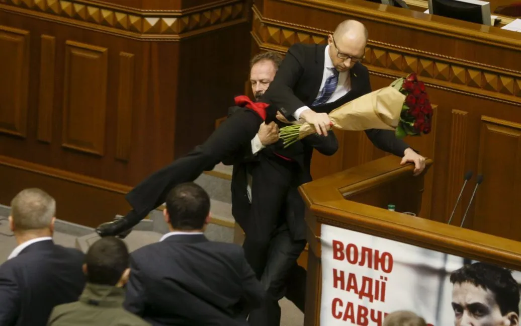 Барна виносить Яценюка з Ради / Фото УНІАН