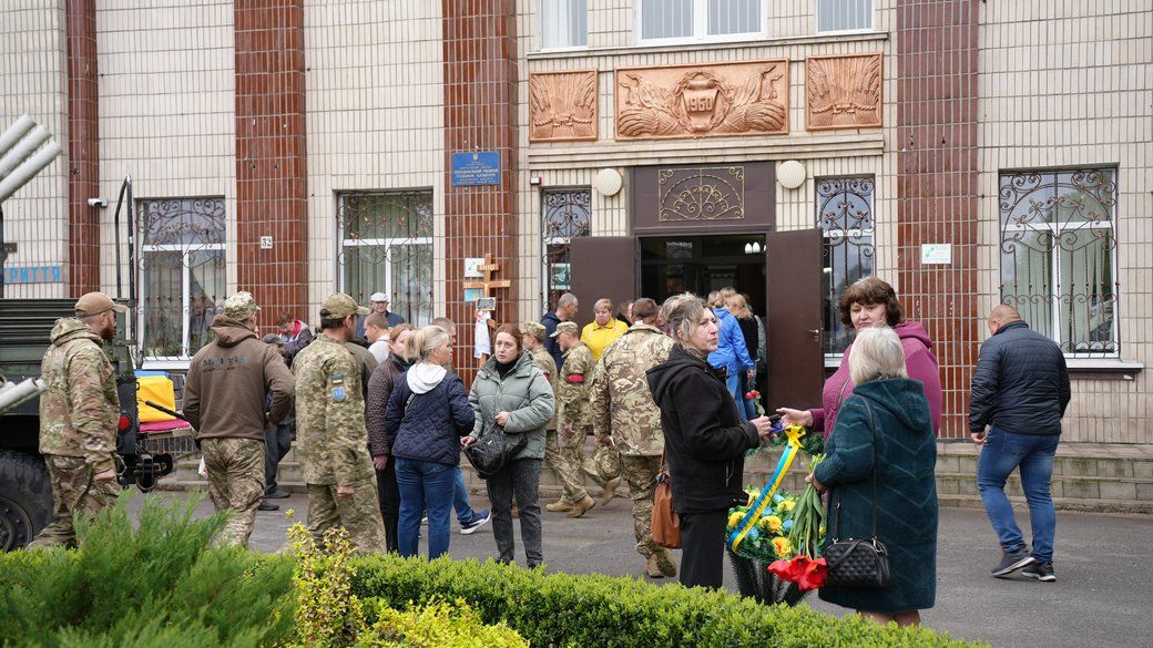 Прощатися з очільником міста жителі Лебедина спочатку прийшли до Будинку культури. Родина, побратими, друзі та знайомі несли квіти й віддавали шану Олександру Бакликову.
