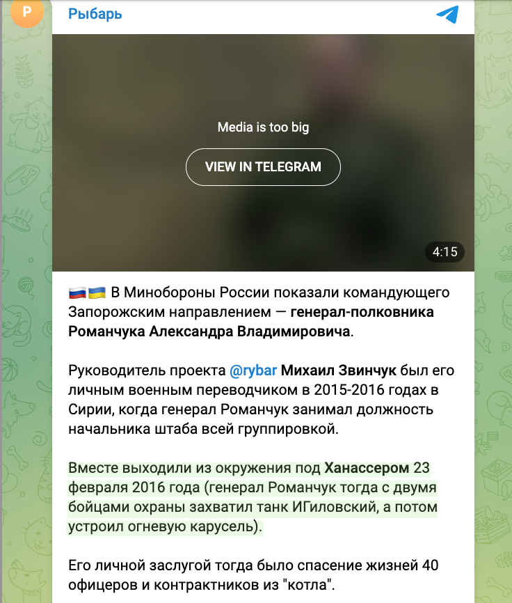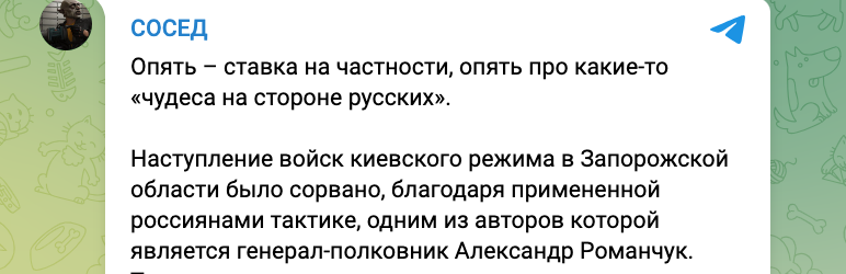 Російська пропаганда в обличчі телеграмних "воєнкорів" змальовує Романчука як "Рембо з розумом Клаузевіца чи Сунь-цзи, який ледь не особисто зупинив український наступ на Запорізькому напрямі у 2023 році".