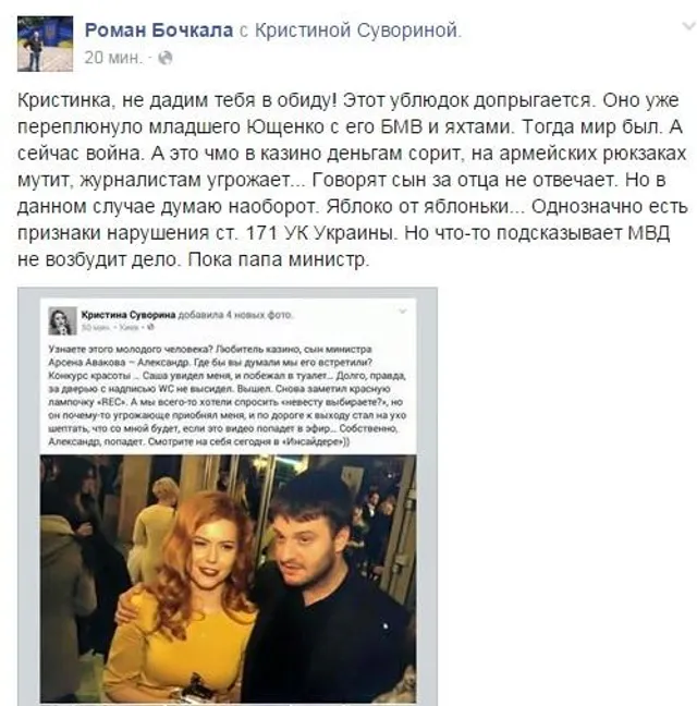 Читайте також: Стало відомо, де зараз перебуває затриманий син Авакова
