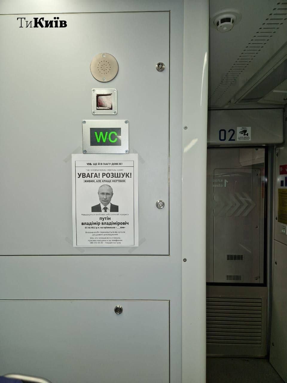 Путіна розшукують в електричках / Фото телеграм-каналу "Ти Київ" та з соцмереж