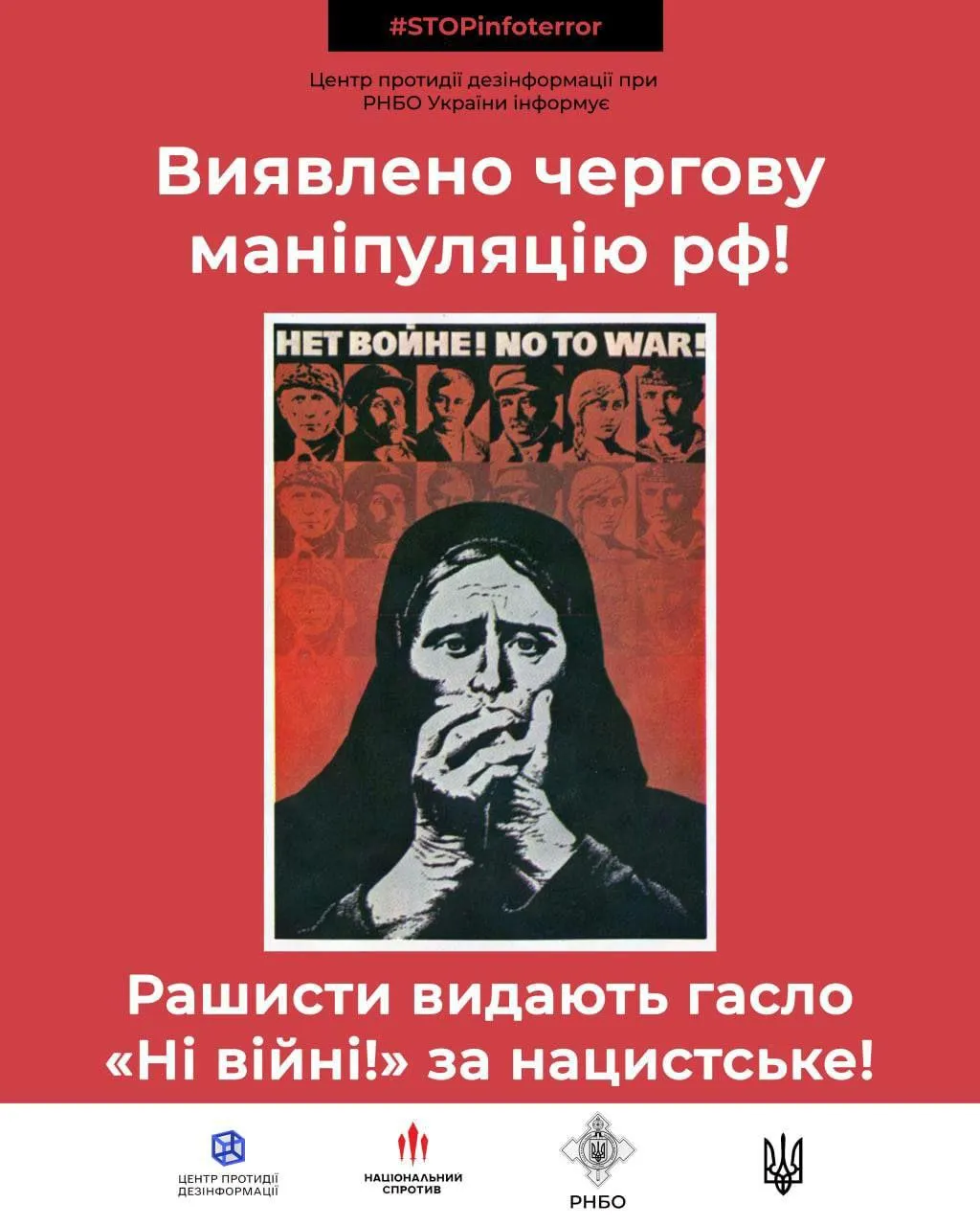 Російська пропаганда переконує, що гасло "Ні війні" – нацистське / Фото Центр протидії дезінформації
