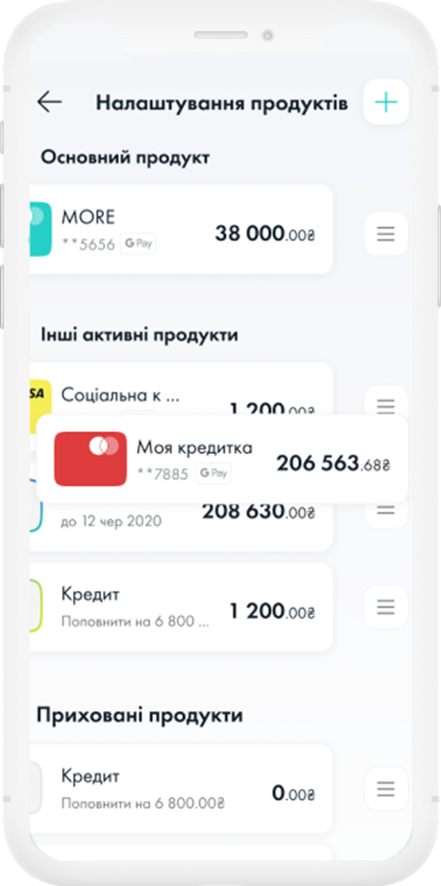 - "Мобільні заощадження", що дають можливість накопичувати та отримувати додатковий дохід на вільні кошти на картковому рахунку;
