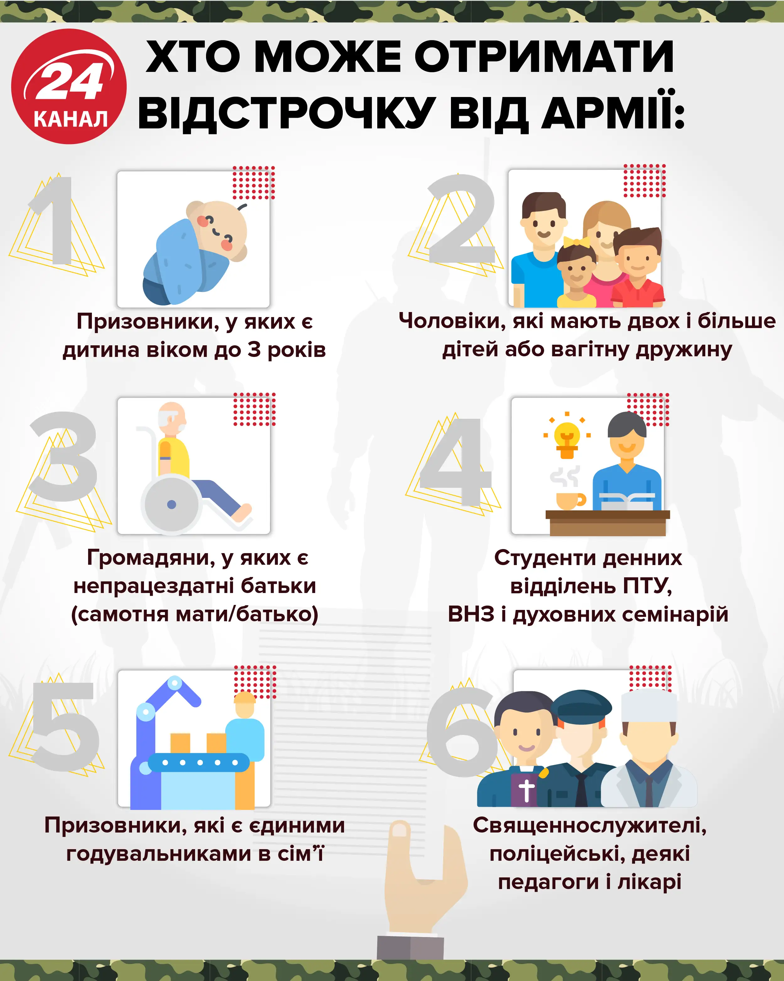 Хто отримає відстрочку від армії / інфографіка 24 каналу