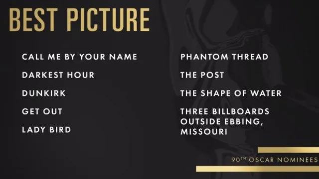 Оскар 2018: номінація "Найкращий фільм року" – список
