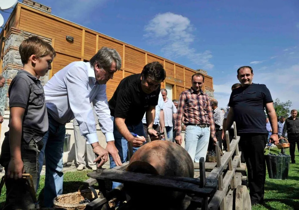 Ющенко та Саакашвілі збирають врожай винограду у Грузії