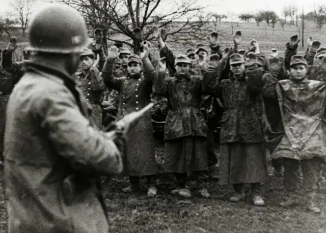 Після капітуляції мені потрібно було виконати єдине завдання — відвести свою роту за американську демаркаційну лінію. Нескінченною низкою німецькі солдати їхали і їхали на захід, точно так же, як колись рухалися на схід. У Хіфлау я розпустив роту, зі мною залишилися лише ті, хто був не в змозі самостійно подбати про себе.