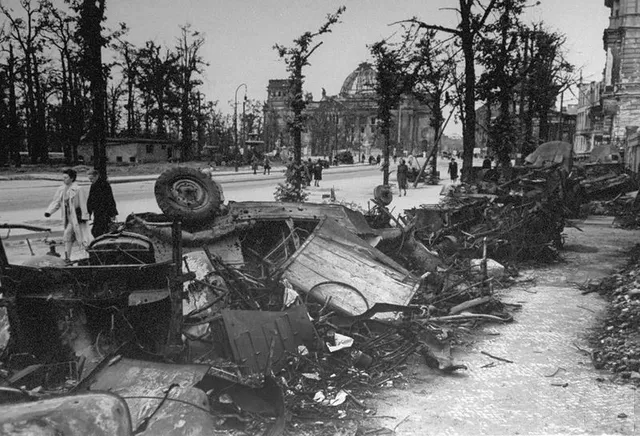 Німецьку столицю було видно здалеку. Вночі на горизонті здіймалося багряне полум'я. Вдень над морем вогню виднівся ще багатокілометровий стовп диму. У місті панувала оргія руйнування. Літаки, гармати, "Катюші", міномети скидували на Берлін тисячі тонн вибухівки. Вперед дорогою котився суцільний потік машин із солдатами, припасами, а також танки, гармати та інша військова техніка.