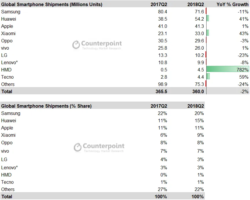 Говорячи про швидкі темпи зростання в минулому році, варто згадати гучне повернення легендарного бренду Nokia в першу десятку світових постачальників телефонів. Друге місце за динамікою продажів смартфонів в 2018 році впевнено зайняв бренд TECNO Mobile, який так само, як і бренди Infinix, Itel і Spice належить китайській компанії TRANSSION Holdings.