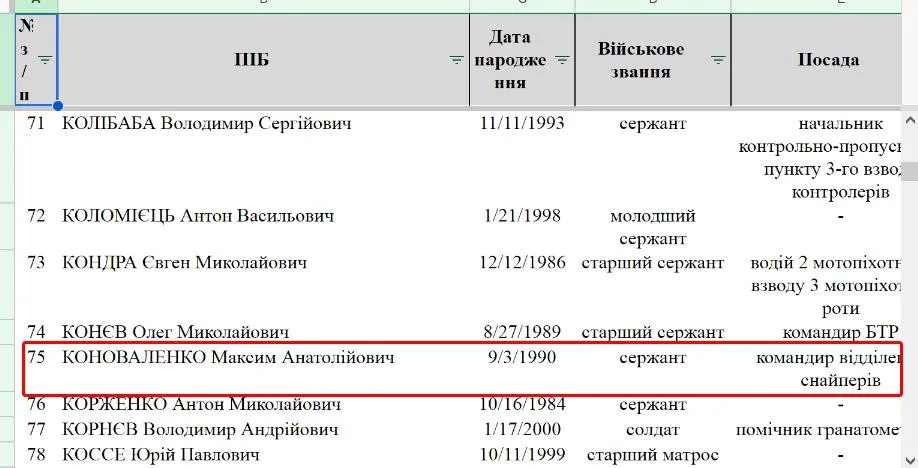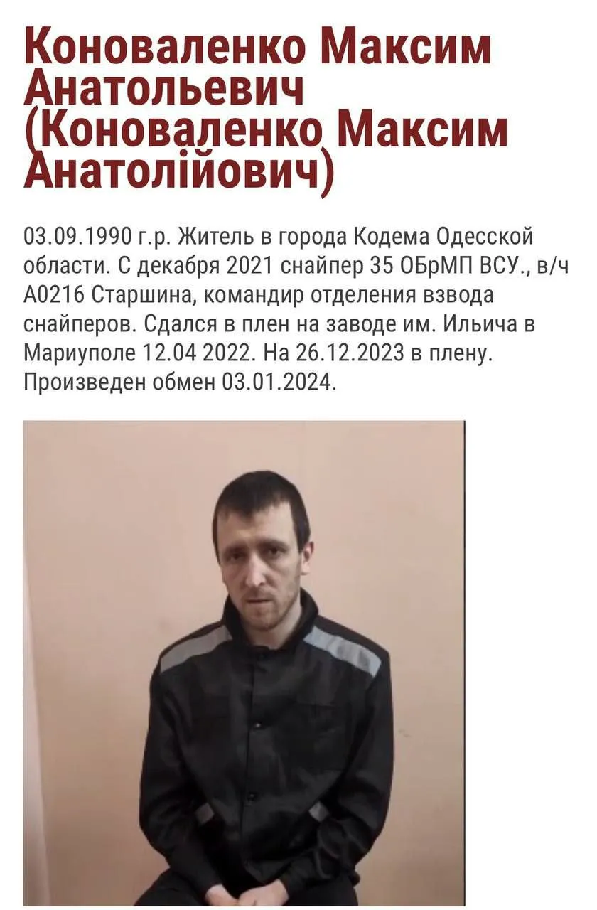 Окрім того, Стерненко зазначив, що у "списку" є Коноваленко Максим Анатолійович 1990 року народження, якого обміняли під час наймасштабнішого обміну військовополоненими 3 січня 2024 року.