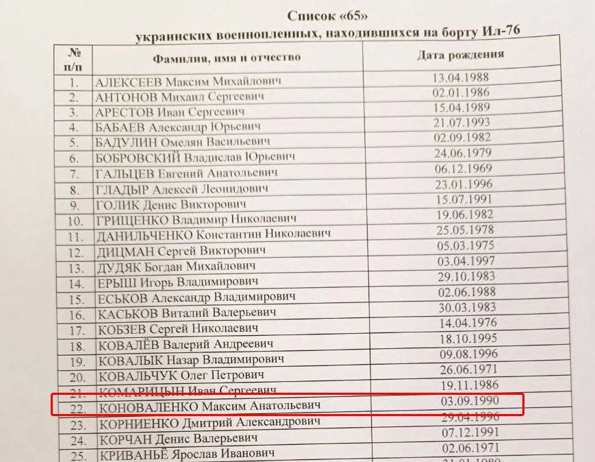 Так звані "списки з українськими полоненими", які буцімто були на борту Іл-76, опублікувала пропагандистка Маргарита Симоньян. Варто зазначити, що у мережі показали надруковану таблицю з прізвищами, іменами, по батькові й датами народження, однак жодних підписів або штампів, які б могли вказувати на те, що це дійсно список осіб, яких везли на обмін.