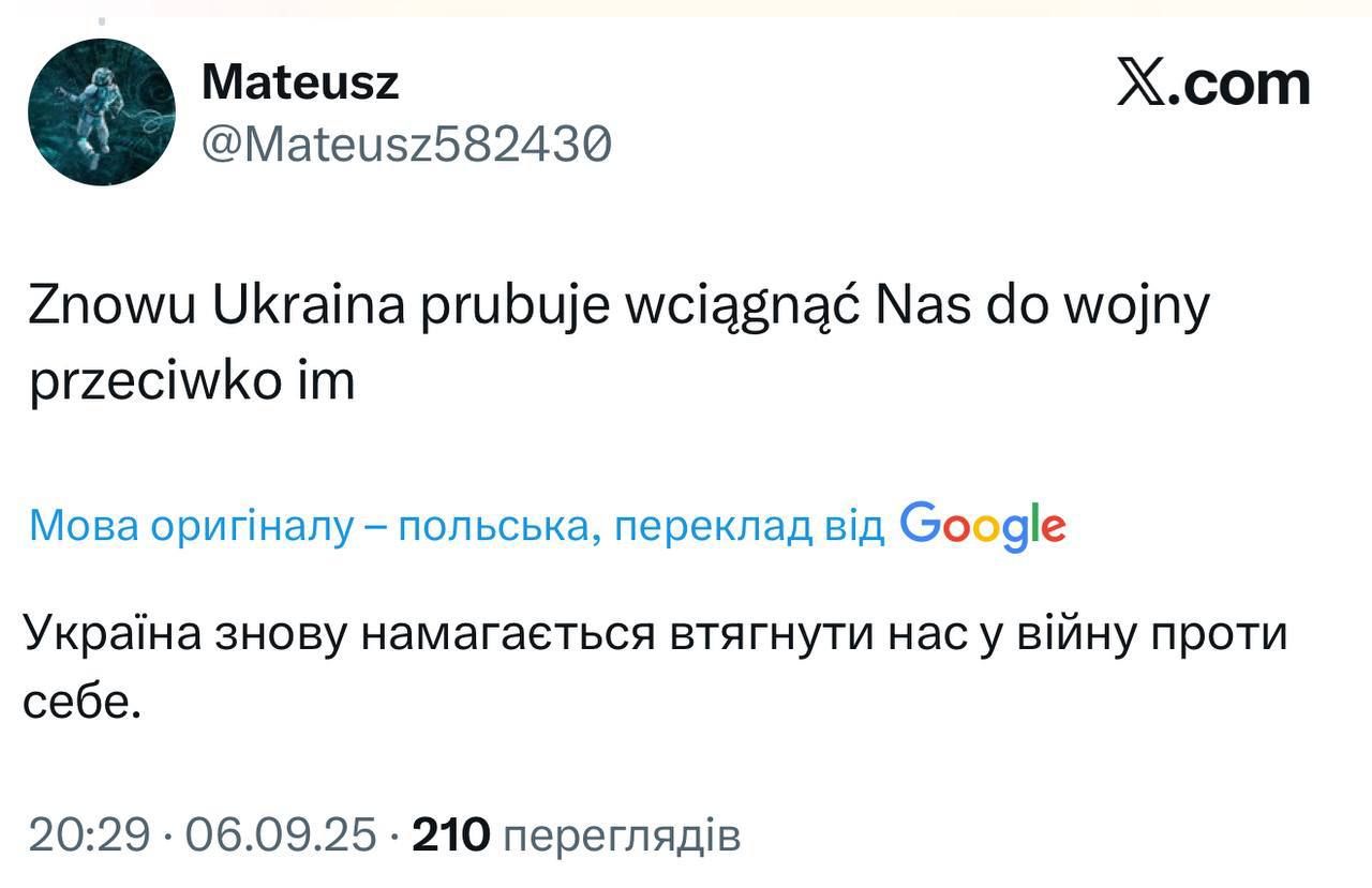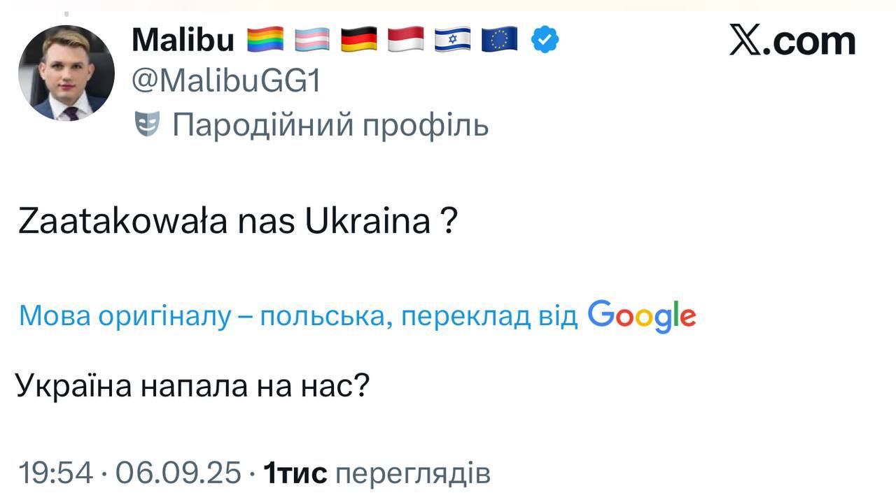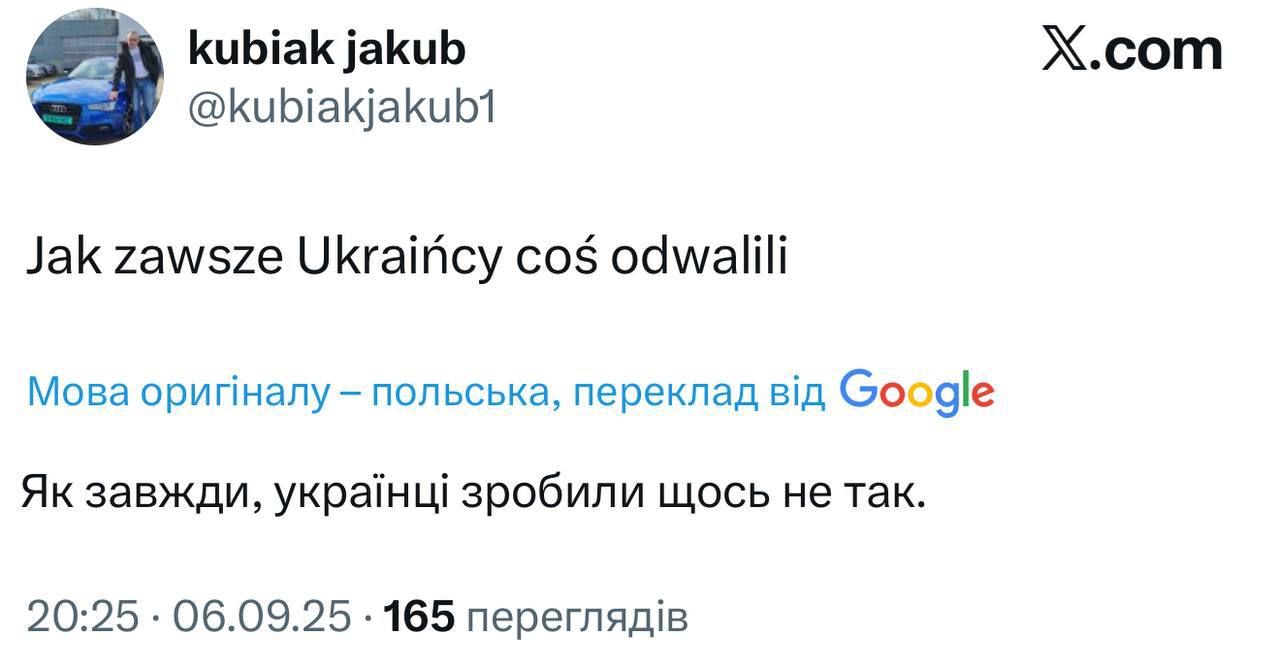 У соцмережі Х поляки відразу перекинули відповідальність за відповідний інцидент на Україну, припускаючи, що це був український дрон або ракета. Дехто навіть каже, що це спроба втягнути Польщу у війну.