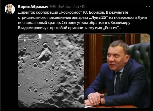 "Видатна" російська станція "Луна-25" успішно розбилася об поверхню місяця. Найкращі меми про "отріцательноє прізімленіє" – зібрав 24 Канал.