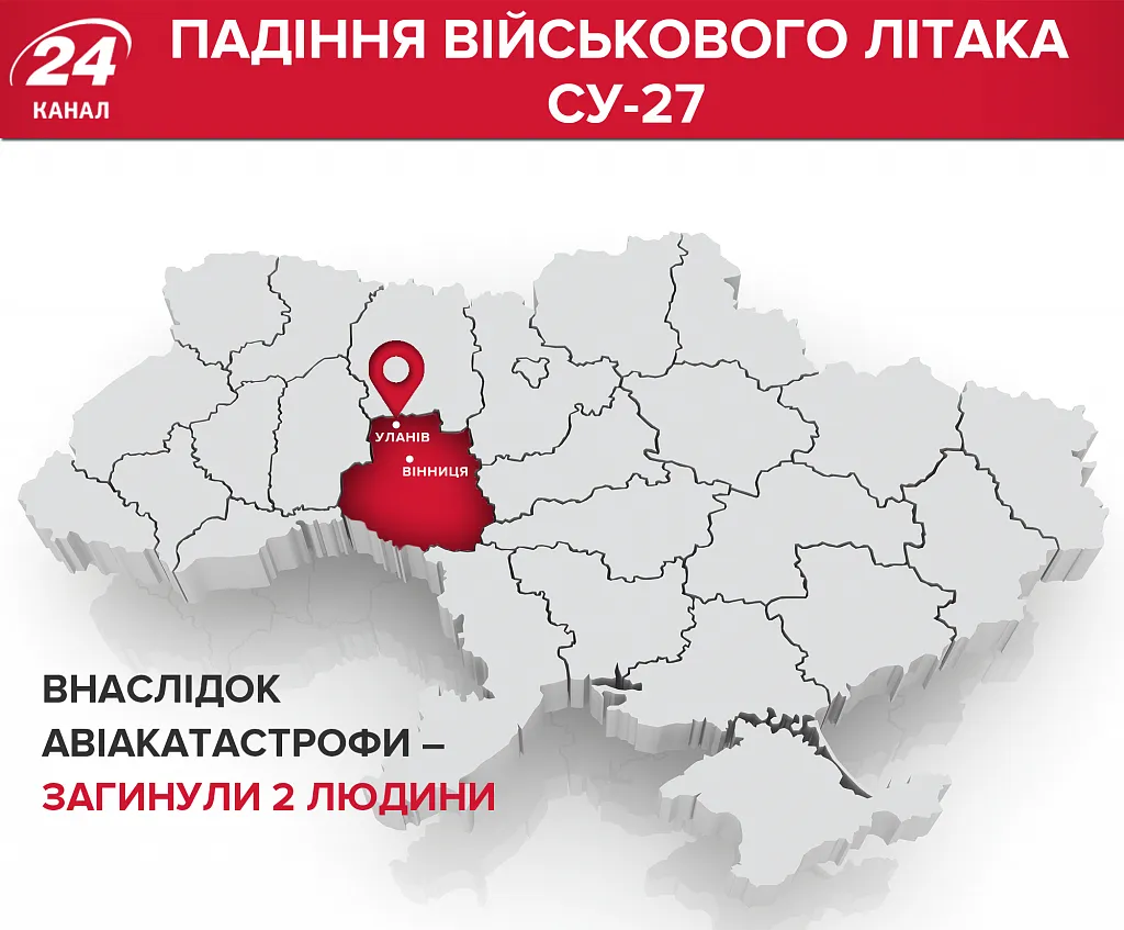 24 канал повідомляв, що 16 жовтня під час військових навчань на Вінниччині впав військовий літак Су-27 під час виконання навчально-бойового польоту. За даними рятувальників, загинули 2 людей.