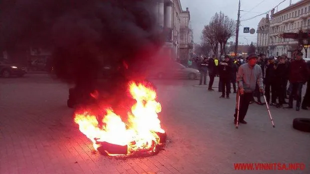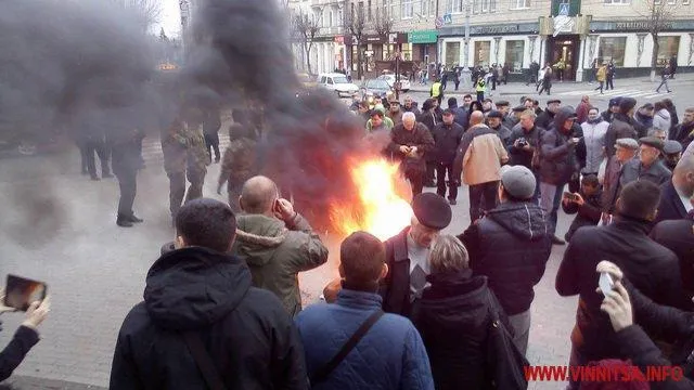 "Станом на 18:20 до протестувальників підійшов начальник ГУ Нацполіції у Вінницькій області Юрій Педос та попросив не палити шини, бо від їдкого диму перехожим може бути погано. Шини загасили рятувальники. Протестувальники разом з ним пішли на переговори до голови облради", – додають у виданні.