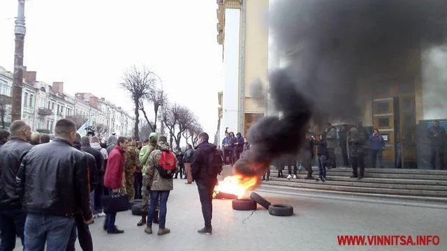 До слова, 13 березня у Вінниці вже палали шини. Тоді активісти під СБУ вимагали звільнити затриманих блокувальників Донбасу.