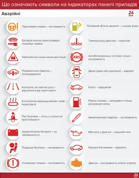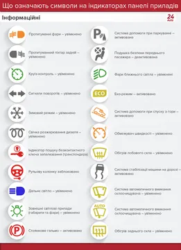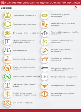Звичайно ж, зубрити напам'ять всі символи і вчити, що означають значки на панелі, не обов'язково. Так це не кожен і зможе. Але уважно перечитати нашу інфографіку все ж варто – щоб в голові відклалося головне: чого стосується той чи інший значок. Адже кожна піктограма намагається графічно відобразити вузол або систему, до якої вона хоче привернути увагу водія. Щоб вже після того він розбирався, про що саме мова – про успішну роботу системи або про вимогу негайної зупинки.