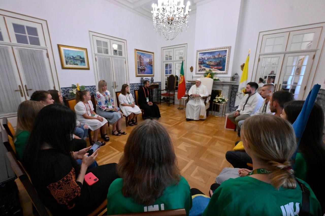У португальській столиці Папа Римський зустрівся з юними українцями, яких супроводжували представники Української греко-католицької церкви. За словами представника УГКЦ отця Романа Демуша, ця зустріч була дуже емоційною. Молодь подарувала Папі символічні подарунки, а він втирав їм сльози і вибачався за війну.