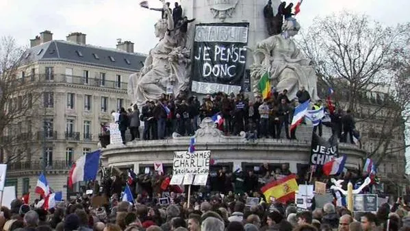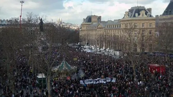Ще за кілька годин до початку Маршу єдності величезна площа Республіки в Парижі почала наповнюватися тисячами людей.
