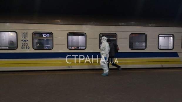 Станом на 19:45 з нього нікого не випускали, "оскільки майже у кожному вагоні є люди із температурою під 40 градусів".
