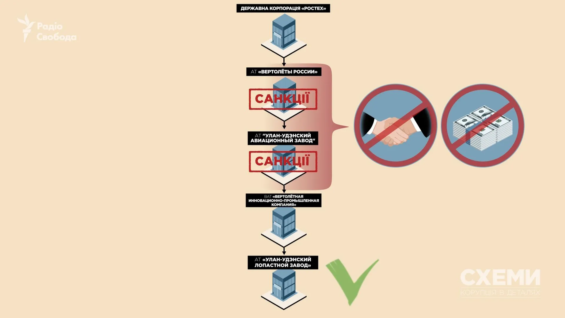 Однак, "Схеми" все-таки знайшли документи компанії «Вертолсервіс», яка подавала на тендер щодо закупівлі лопатей однієї військової частини восени 2017 року. У документах по цих деталях було вказано, що виробник – російський "Улан-Уденський лопатний завод". Цей завод підпорядковується російському підприємству "Улан-Уденського авіаційного заводу", який є частиною холдингу "Вертольоти Росії", підприємства якого активно працюють над російським оборонним замовленням.