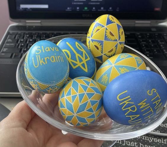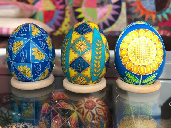 Втім, ми розуміємо, що не всі вміють робити писанки зі складним розписом. Та для патріотичних великодніх яєць це не головне. Достатньо знайти жовту і синю фарби – для крашанок, або патріотичні картинки чи наклейки, що буде ще простіше.