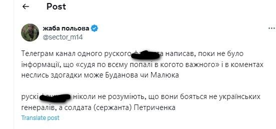 - "Щиро вірила, що Петриченко точно та людина, яка побачить кінець війни. Щирі співчуття всім друзям і близьким".
